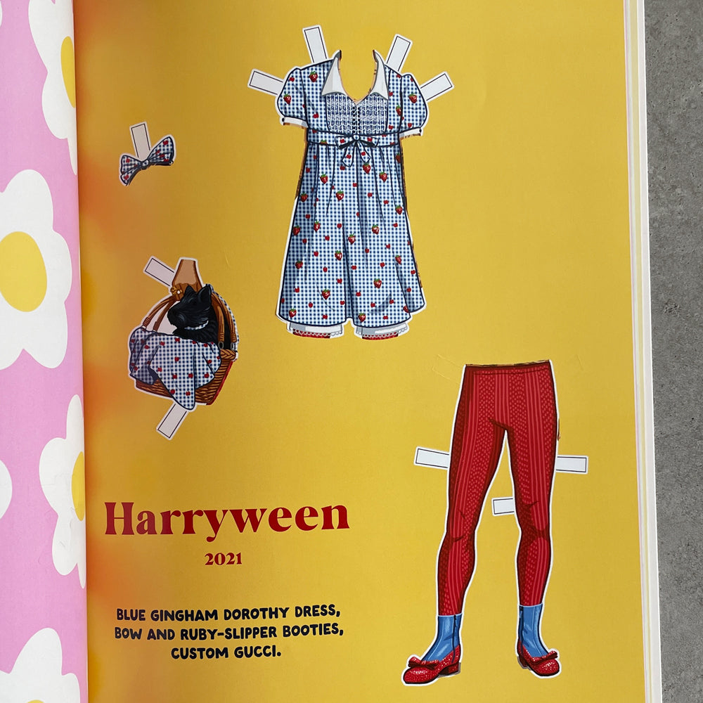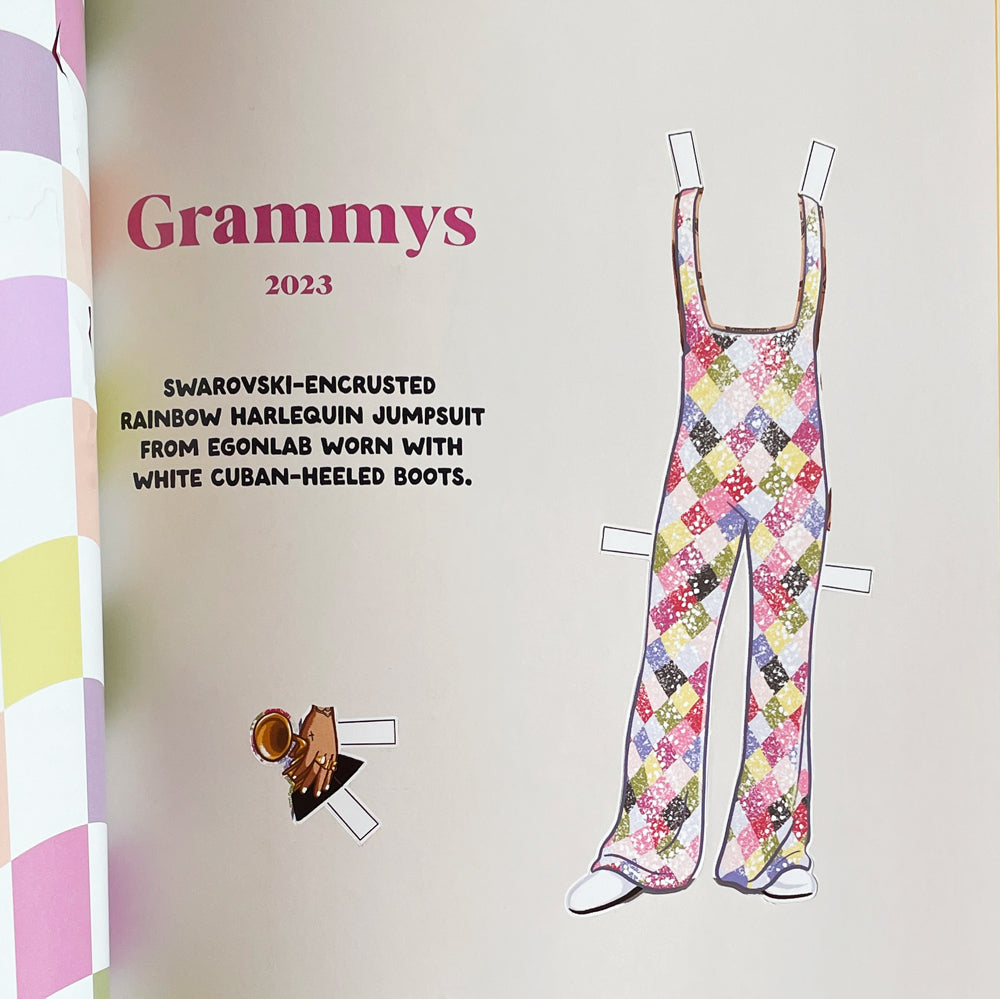 Featuring a pop-out Harry doll, ready to be fitted with 12 of his most headline-worthy looks. Perhaps the head-to-toe pink glam rock Gucci ensemble he wore at Coachella, the iconic brown geometric suit with matching handbag from the Brit Awards, or maybe the unforgettable Swarovski-encrusted rainbow harlequin jumpsuit from Egonlab he wore to the Grammys.