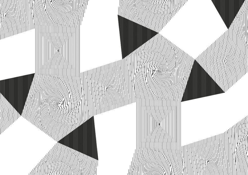 On the contrary: here, the motifs are combined to form a visual narrative that is revealed when the static basic image is set in motion by means of the striped foil. Then an astonishing panorama of unseen moirés and patterns unfolds.