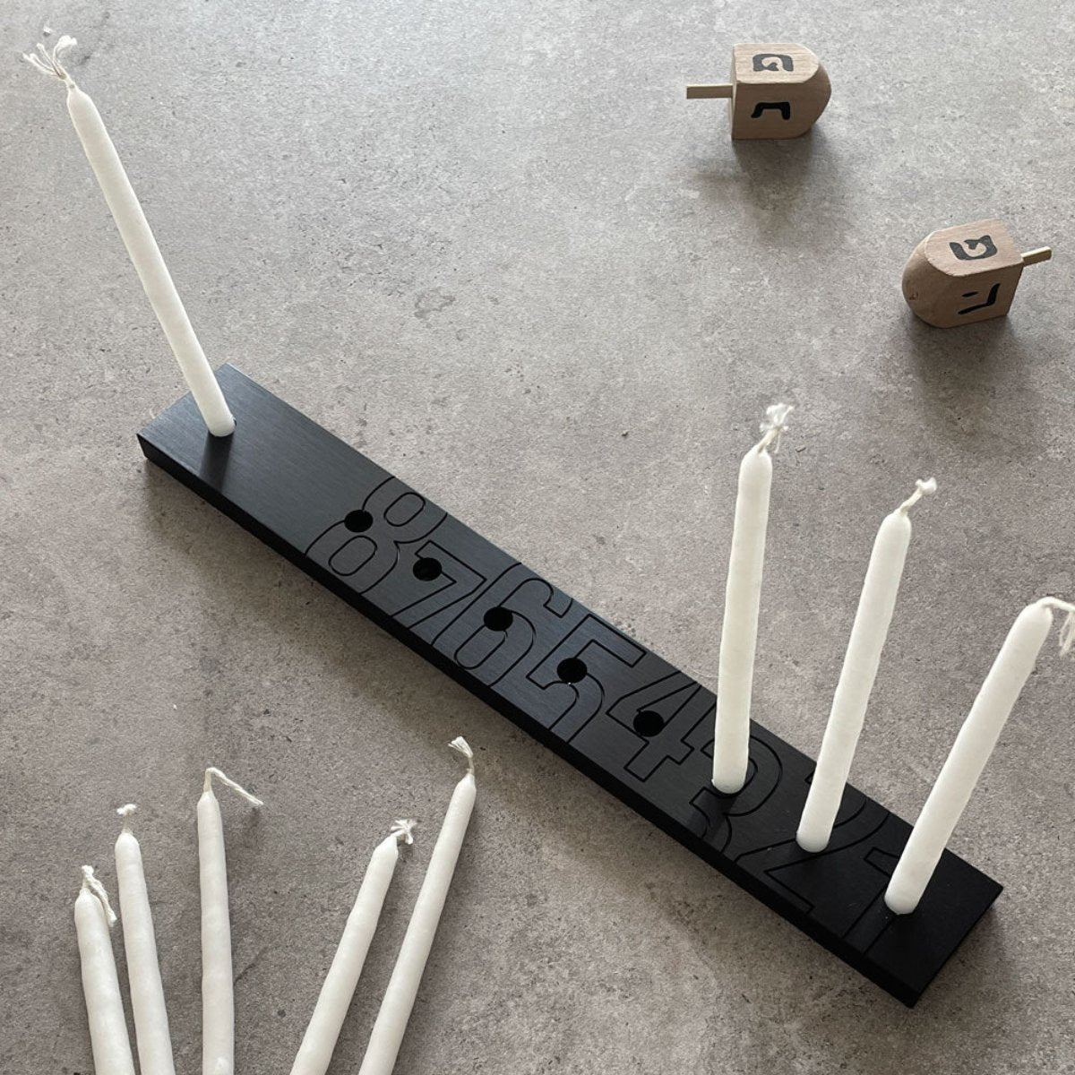 A modern take on the classic menorah. Its minimalistic design not only brings a touch of elegance to your holiday decor but also makes it incredibly easy to count the candles each night.